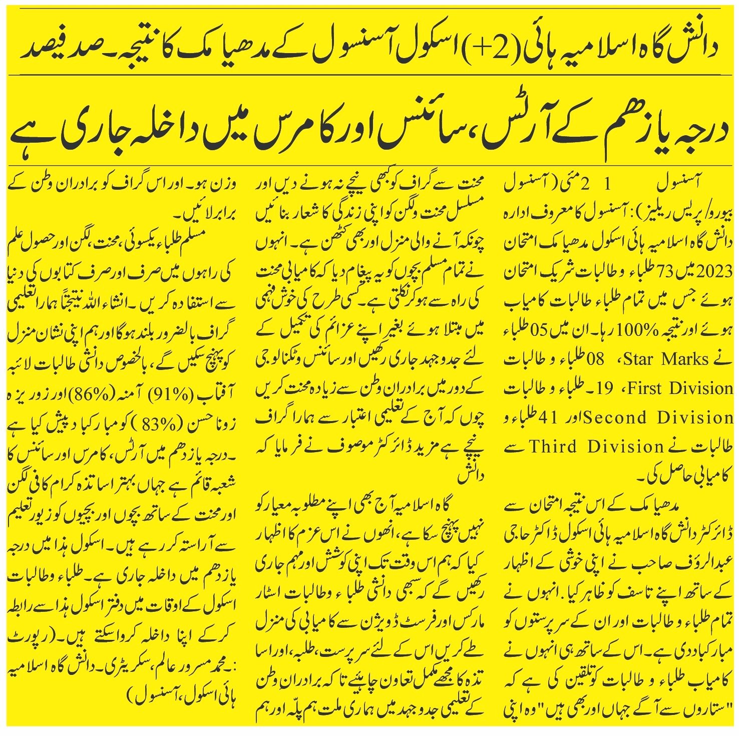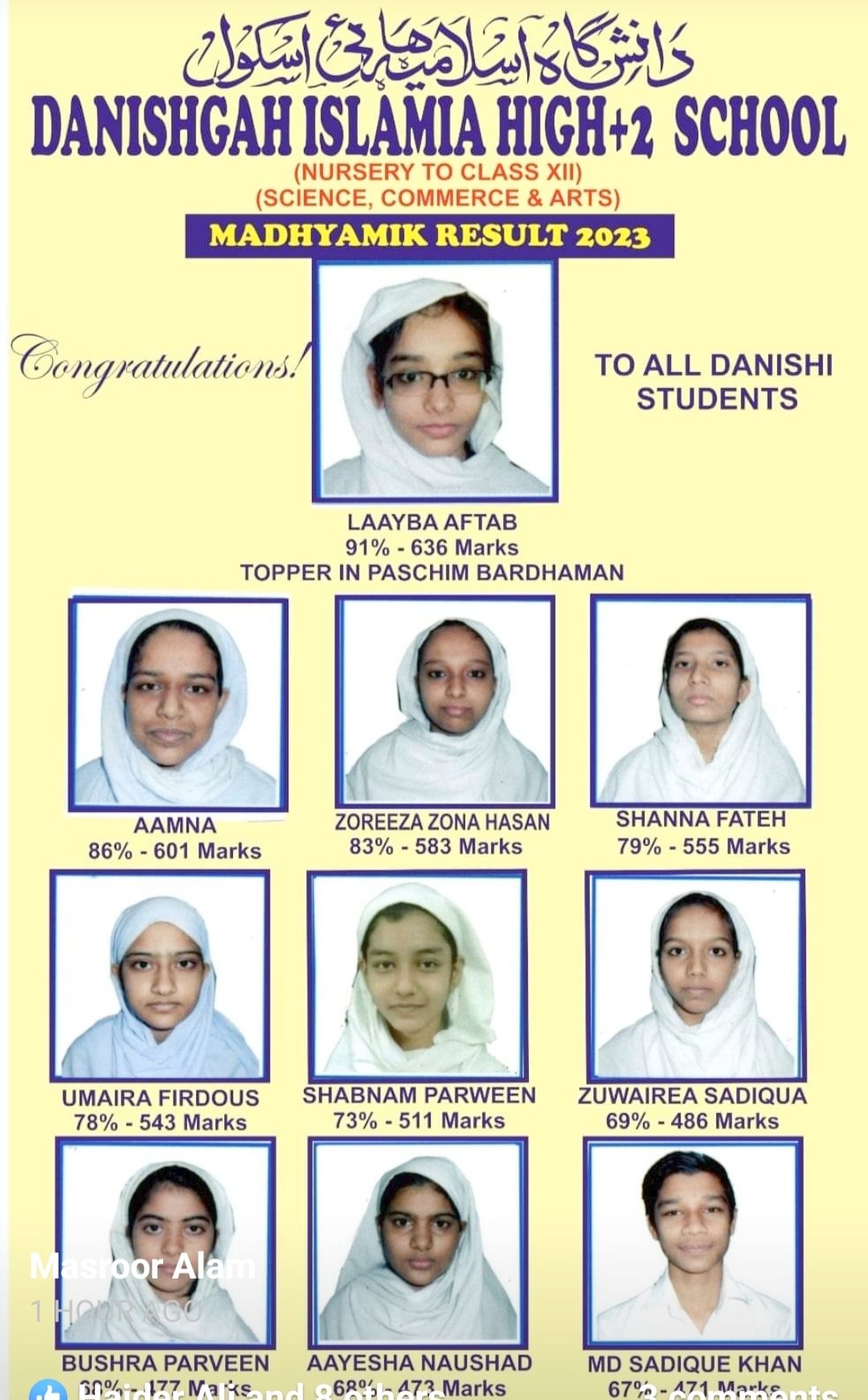 دانش گاہ اسلامیہ اسکول کے مدھیامک امتحان کا نتیجہ سو فیصد رہا