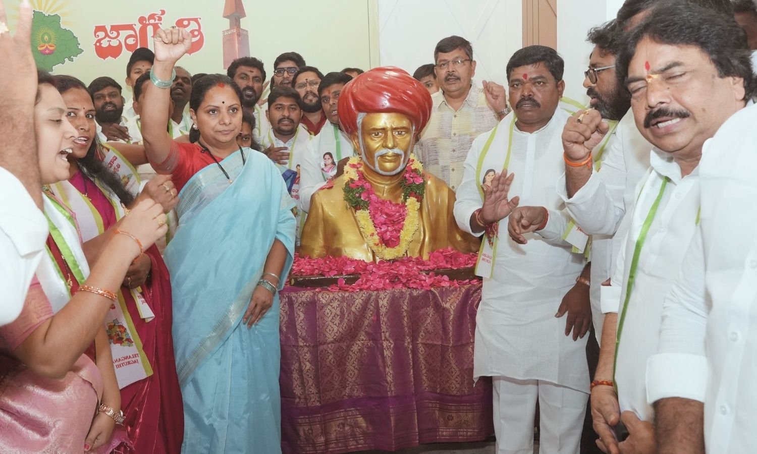 صدر تلنگانہ جاگروتی کلواکنٹلہ کویتا نے جیوتی راؤ پھولے کی جینتی کے موقع پر ان کے مجسمہ پر گلہائے عقیدت پیش کئے اور ان کی خدمات کو خراج عقیدت پیش کیا۔ انہوں نے کہا کہ پھولے کے نظریات کو عملی جامہ پہنانا ہی ان کے لئے حقیقی خراج ہوگا۔ اس موقع پر جاگروتی کے قائدین بھی موجود تھے۔کویتا نے کہا کہ جاگروتی پسماندہ طبقات کے حقوق کے لئے اس انداز میں جدوجہد کر رہی ہے کہ گویا پھولے دوبارہ جنم لے چکے ہوں۔ انہوں نے کہا کہ قانون ساز اداروں میں خواتین ریزرویشن میں بی سی خواتین کے لئے سب کوٹہ کے حصول تک جدوجہد جاری رکھی جائے گی اور مرکز کو اس مطالبہ کی قبولیت پر مجبور کیا جائے گا۔انہوں نے کہا کہ رواں ماہ کی 16، 17 اور 18 تاریخ کو پارلیمنٹ میں خواتین بل پر بحث متوقع ہے اور ضرورت پڑنے پر وہ دہلی جا کر تمام سیاسی جماعتوں سے اس معاملہ میں بات کریں گی۔ انہوں نے خبردار کیا کہ صرف اکثریت کی بناپر بل منظور کر لیا گیا تو جاگروتی خاموش نہیں بیٹھے گی اور بی سی خواتین کے لئے سب کوٹہ حاصل ہونے تک تحریک جاری رکھی جائے گی۔کویتا نے الزام عائد کیا کہ خواتین ریزرویشن بل میں بی سی خواتین کے لئے سب کوٹہ شامل نہ کرنا اس بات کی علامت ہے کہ حکمرانوں کو اس طبقہ کے حقوق کی کوئی پرواہ نہیں ہے۔ انہوں نے کہا کہ اس ناانصافی کے خلاف ایسی تحریک چلائی جائے گی جس سے مرکز کو فیصلہ بدلنے پر مجبور ہونا پڑے۔انہوں نے جیوتی راؤ پھولے کے مجسمہ کی تنصیب میں حکومت کی لاپرواہی پر بھی ناراضگی ظاہر کرتے ہوئے کہا کہ حکومت نے جینتی تک مجسمہ مکمل کرنے کا وعدہ کیا تھا، مگر اب تک اس پر عمل نہیں ہوا۔ انہوں نے مطالبہ کیا کہ کم از کم ڈاکٹر بی آر امبیڈکر جینتی تک پھولے کا مجسمہ مکمل کیا جائے۔کویتا نے کہا کہ جیوتی راؤ پھولے نے بے شمار مشکلات اور توہین کے باوجود کبھی اپنے اصولوں سے سمجھوتہ نہیں کیا اور سماجی انصاف کے لئے مسلسل جدوجہد کرتے رہے۔ انہوں نے کہا کہ کسی بھی سماجی انقلاب کی بنیاد قربانی ہوتی ہے اور اگر معاشرے میں تبدیلی لانی ہے تو ہمیں خود اپنے اندر تبدیلی سے اس کا آغاز کرنا ہوگا۔انہوں نے کہا کہ جاگروتی کو فخر ہے کہ ملک میں خواتین ریزرویشن بل کو حقیقت بنانے میں اس کی تحریک کا اہم کردار رہا ہے مگر اس میں بی سی خواتین کے لئے سب کوٹہ شامل نہ ہونا ایک بڑی خامی ہے جسے دور کرنا ضروری ہے۔کویتا نے محکمہ برقی کے آؤٹ سورسنگ ملازمین کو مستقل کرنے کا مطالبہ کرتے ہوئے کہا کہ ان کے احتجاج کو دبانے کی کوشش کی جا رہی ہے، جس کی وہ مذمت کرتی ہیں۔ انہوں نے اعلان کیا کہ جاگروتی ان ملازمین کی جدوجہد کی مکمل حمایت کرے گی اور ان کے حق کے لئے آواز بلند کرتی رہے گی۔انہوں نے کہا کہ گزشتہ حکومت کے دور میں ان ملازمین کی تنخواہوں میں اضافہ کرنے کی کوشش کی گئی تھی اور آج انہیں ماہانہ 40 ہزار روپئے تک تنخواہ ملنے میں جاگروتی کا بھی کردار رہا ہے۔آخر میں کویتا نے کہا کہ جیوتی راؤ پھولے کے نظریات پر عمل کرتے ہوئے سماجی انصاف کے قیام کےلئےجدوجہد جاری رکھی جائے گی اور عوام کے حقوق کے تحفظ کے لئے ہر ممکن قدم اٹھایا جائے گا۔