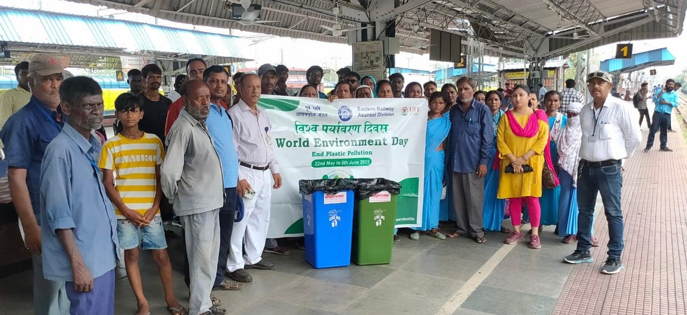 इस राष्ट्रव्यापी पहल के हिस्से के रूप में, पूर्व रेलवे के आसनसोल मंडल ने पर्यावरण के अनुकूल कार्यक्रमों की एक श्रृंखला शुरू की है, जिसमें न केवल अपने कर्मचारियों को शामिल किया गया है, बल्कि यात्रियों और व्यापक तौर पर आम जनता को भी सक्रिय रूप से शामिल किया गया है। आसनसोल स्टेशन पर 30 मई को रेलवे अधिकारियों, कर्मचारियों और आम यात्रियों की मौजूदगी में एक यात्री जागरूकता कार्यक्रम आयोजित किया गया, जिसमें प्लास्टिक प्रदूषण के खतरों पर प्रकाश डाला गया और सूचनात्मक संवाद के माध्यम से व्यवहार परिवर्तन को प्रोत्साहित किया गया।