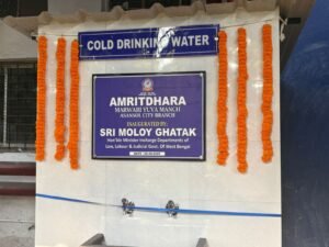 *आसनसोल* : ईएसआई अस्पताल में एक विशेष कार्यक्रम का आयोजन किया गया, जिसमें Marwari Yuwa Manch, Asansol City Branch की ओर से “अमृत धारा” योजना के तहत ठंडे पेयजल मशीन की स्थापना की गई। इस मशीन का उद्घाटन पश्चिम बंगाल के कानून मंत्री श्री मोलॉय घटक के करकमलों द्वारा किया गया।