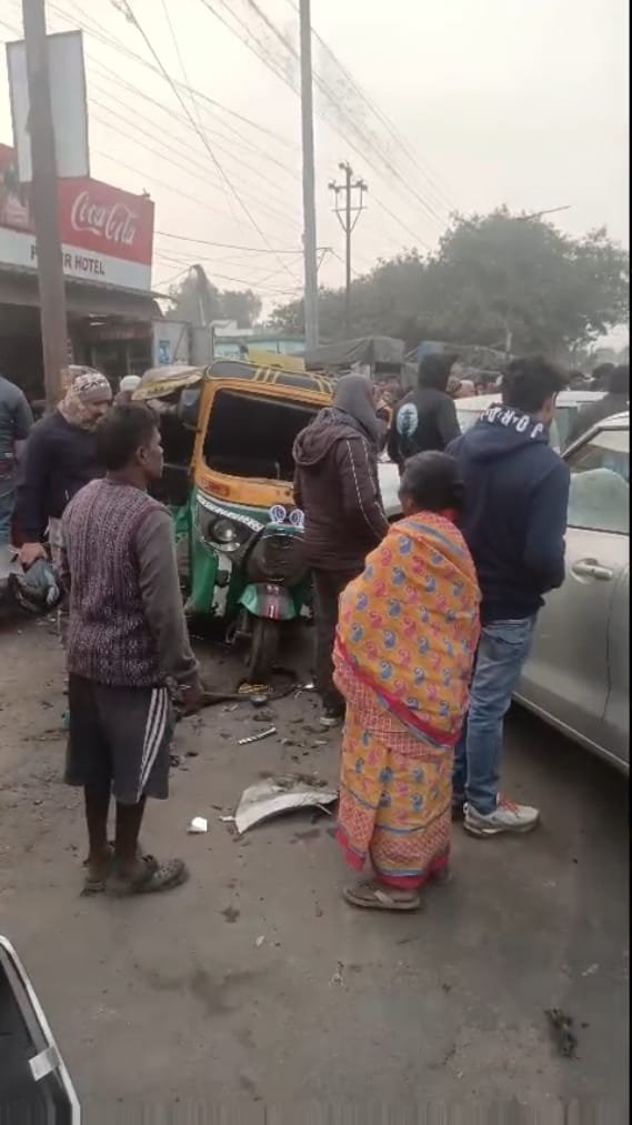 *आसनसोल* , पश्चिम बंगाल आसनसोल साऊथ पुलिस फाड़ी अंतर्गत फतेहपुर मे एक भीषण सड़क हादसा हुआ है, जिस सड़क हादसे मे एक महिला सहित चार लोग गंभीर रूप से घायल हैं, जिनको इलाज के लिये अस्पताल मे भर्ती कराया गया है, घटना स्थल पर मौजूद लोगों की अगर माने तो आसनसोल की ओर से एक ऑटो चार लोगों को लेकर नियामतपुर की तरफ जा रही थी, तभी नियामतपुर की ओर से आ रही एक कार अपनी दिशा छोड़कर विपरीत दिशा मे आकर ऑटो को जोरदार टक्कर मार दी, जिस टक्कर मे ऑटो मे सवार एक महिला सहित कुल चार लोग गंभीर रूप से घायल हैं, स्थानीय लोगों ने कहा की कार की रफ़्तार इतनी तेज थी की कार का अगला हिस्सा पूरी तरह से क्षतिग्रस्त हो चूका है, साथ मे ऑटो को भी बुरी तरह क्षतिग्रस्त कर दिया है, स्थानीय लोगों ने घटना का पूरा जिम्मेवार कार चालक को ठहराया और यह कहा की कार चालक लापरवाही से कार चला रहा था और अपनी दिशा को छोड़कर विपरीत दिशा मे बेहद रफ़्तार के साथ कार भगा रहा था, फिलहाल मौके पर पहुंची आसनसोल साऊथ ट्रेफिक पुलिस ने स्थित को बिगड़ने से पहले नियंत्रण कर लिया और कार व ऑटो को अपने कब्जे मे लेकर आसनसोल साऊथ ट्रेफिक थाने ले गई है, साथ ही मामले की छानबीन भी शुरू कर दी है