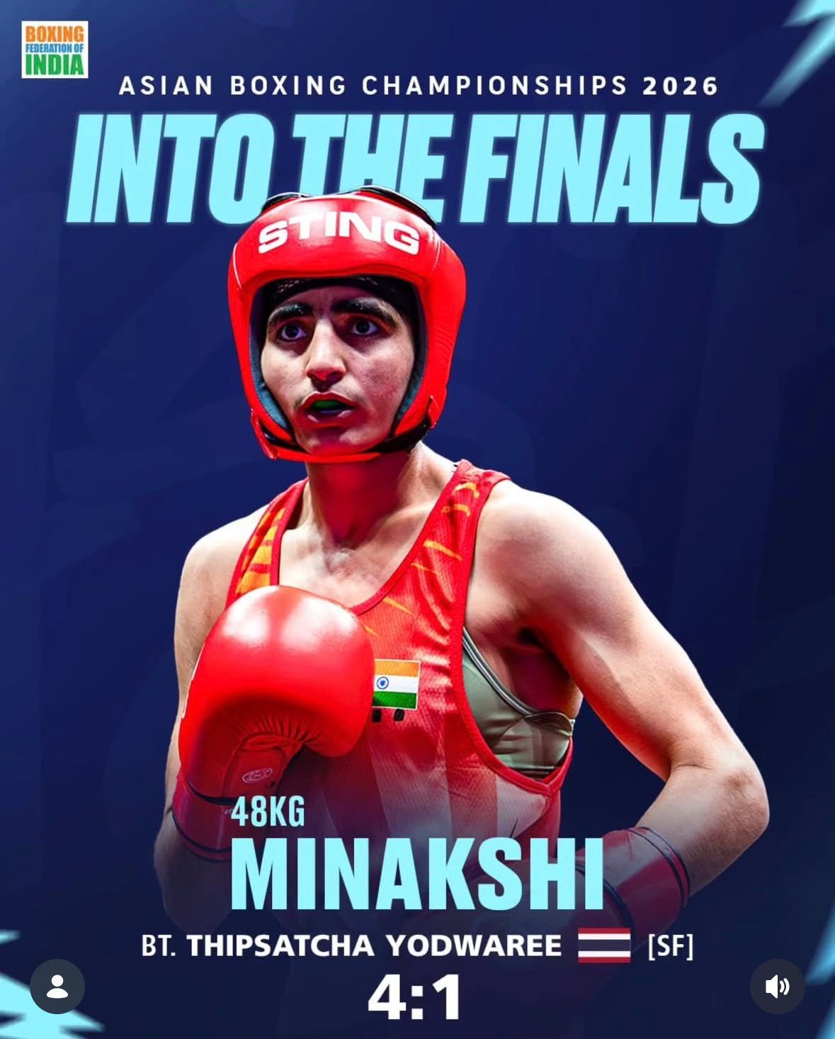 सुभाष अग्रवाला ने कहा कि महिलाओं के वर्ग में मीनाक्षी हुड्डा (48 किग्रा) और जैस्मीन लंबोरिया (57 किग्रा) ने अपने-अपने सेमीफाइनल मुकाबले जीतकर फाइनल में प्रवेश कर लिया है। मीनाक्षी ने थाईलैंड की थिपसाशा योदवारी को 4-1 से हराया और अब उनका सामना मंगोलिया की नोमुंदारी एंख अमगालान से होगा।