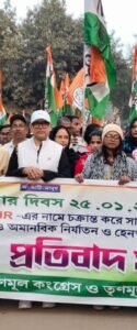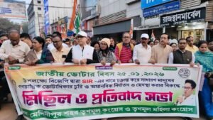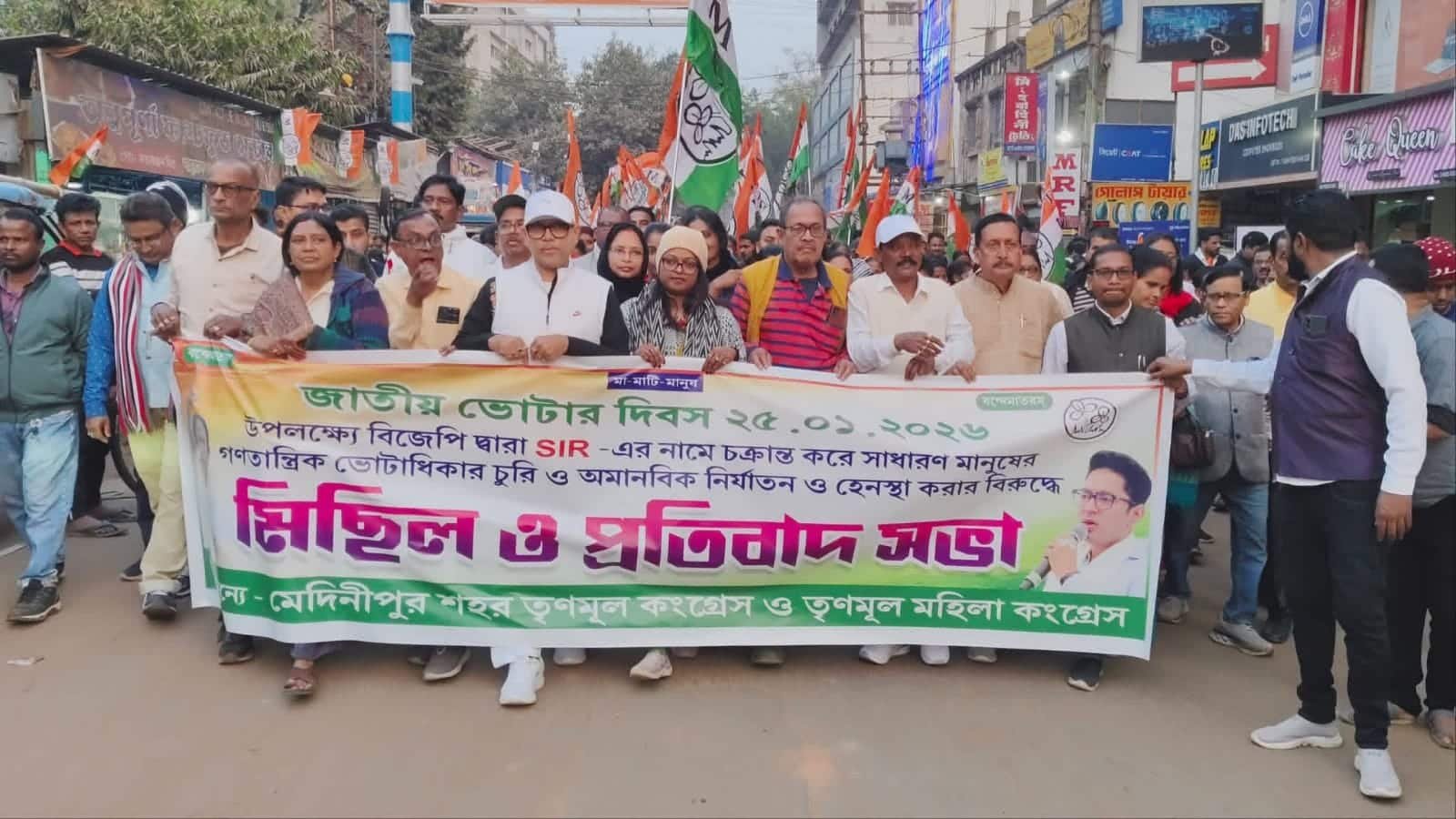 #SIR के नाम पर वोटरों को परेशान किया जा रहा है। तृणमूल कांग्रेस ने रविवार शाम को जिले में कई जगहों पर विरोध रैली निकाली और आरोप लगाया कि चुनाव आयोग SIR (वोटर संशोधन) के नाम पर वोटरों को परेशान कर रहा है। पार्टी नेताओं ने कहा कि SIR प्रक्रिया एक बड़ी साजिश है। SIR सुनवाई प्रक्रिया को लेकर थोड़ा शक होने पर भी वोटरों को बुलाकर परेशानी खड़ी की गई। बुजुर्ग और बीमार लोगों को। तृणमूल नेताओं ने आरोप लगाया कि सुनवाई कार्यालय के सामने कतार में खड़े होकर भी कई परेशानियां खड़ी की गईं।