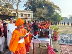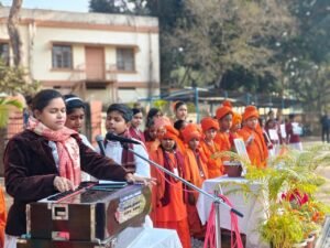 Inspired by these timeless words, our school joyfully celebrated Swamiji’s birthday on January 12. The event commenced with a floral tribute to Swamiji’s portrait, led by our teacher-in-charge, Mr. Ashwini Kumar Kar Sir.
