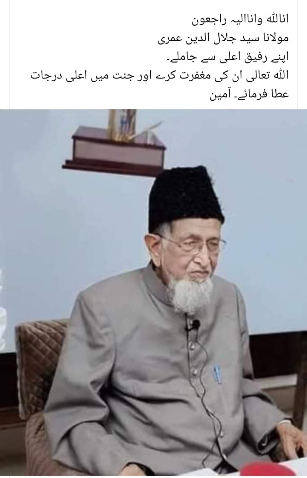 آسنسول 29 لگست (پریس ریلیز): جماعت اسلامی ہند کے سابق امیر سید جلال الدین عمری کی رحلت پوری ملت اسلامیہ کے لئے نا قابل تلافی خسارہ ہے –