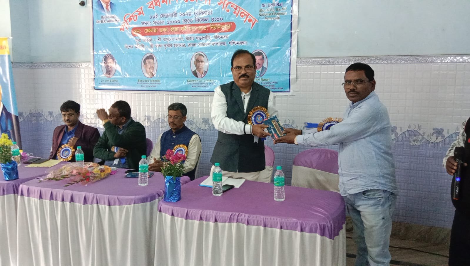 कुल्टी।पश्चिम बंगाल आसनसोल कुल्टी विधानसभा इलाके के वार्ड संख्या 60 स्थित नियामतपुर इसको बाईपास रोड एक निजी भवन आल इंडिया कॉन्फ्रेंशन एससीएसटी ऑर्गनाइजेशन के बैनर तले एक दिवसीय पश्चिम बर्धमान जिला सम्मेलन का आयोजन किया गया, जिस कार्यक्रम मे मुख्य अतिथि के तौर पर आल इंडिया कॉन्फ्रेंशन एससीएसटी ऑर्गनाइजेशन के जैनरल सेकेट्री डॉक्टर ओम सुधा, पश्चिम बंगाल स्टेट प्रेसिडेंट बासुदेव मंडल, पश्चिम बंगाल स्टेट जेनरल सेकेट्री स्वपन कुमर हलदर, गणेश बाउरी स्टेट असिस्टेंट जेनरल सेकेट्री उपस्थित हुए इनके अलावा कार्यक्रम मे राज्य के विभिन्न जिलों से आए एससीएसटी से जुड़े कई गणमान्य लोग भी उपस्थित रहे, कार्यक्रम मे उपस्थित तमाम लोगों ने अपनी -अपनी सनास्याओं को मंच के द्वारा आल इंडिया कॉन्फ्रेंशन एससीएसटी ऑर्गनाइजेशन के वरिष्ट पदाधिकारियों के समक्ष रखा, वहीं आल इंडिया कॉन्फ्रेंशन एससीएसटी ऑर्गनाइजेशन के पदाधिकारियों ने केंद्र सरकार के नीतियों के खिलाफ जोरदार आंदोलन करने की चेतावनी दी साथ मे उन्होने एससीएसटी और ओबीसी आरछण को संविधान के तहत चलाने की मांग केंद्र सरकार से की उन्होने केंद्र सरकार के ऊपर यह आरोप लगाया की जब से केंद्र मे भाजपा की मोदी की सरकार आई है तब से देश का गणतंत्र और लोकतंत्र पूरी तरह खतरे मे पड़ गया है, यहाँ तक के बाबा साहब भीम राव अम्बेडकर द्वारा बनाया गया संविधान से भी इस सरकार ने छेड़छाड़ की है, और एससीएसटी, ओबीसी को मिलने वाला आरछण मे उन्होने कटौती कर दी है, जिससे देश का गरीब असहाय और पिछड़ा वर्ग का एससीएसटी और ओबीसी समाज काफी दुखी हैं, अगर उनको उनका हक नही मिला तो वह सब एक जुट होकर केंद्र शासित सरकार भाजपा के खिलाफ उग्र आंदोलन करने पर बाध्य हो जायेंगे, इस लिये वह आसा करते हैं की उनकी मांग को केंद्र सरकार स्विकुर्ती दे