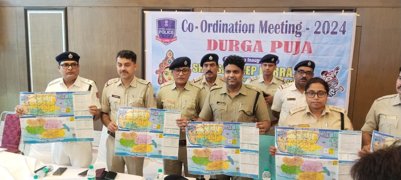 बराकर । आसनसोल दुर्गापुर पुलिस कमिश्नरेट की ओर से दुर्गा पूजा को लेकर समन्वय बैठक का आयोजन किया गया । इस संबंध में बताया जाता है कि दुर्गा पूजा के दौरान पूजा में किसी तरह की गड़बड़ी न हो लोग आनंद पूर्वक पूजा का आनंद ले सके और सारी व्यवस्थाएं सुचारू रूप से कम करें । जिसको लेकर प्रशासन की ओर से तैयारी की जा रही है । इसी क्रम में शुक्रवार को एल सी मोड़ के निकट स्थित एक निजी मैरेज हाल में आसनसोल दुर्गापुर पुलिस कमिश्नरेट की ओर से सभी पूजा कमिटीयो को लेकर समन्वय बैठक का आयोजन किया गया । बैठक के दौरान पूजा गाइड मैप का भी उद्घाटन किया गया ।