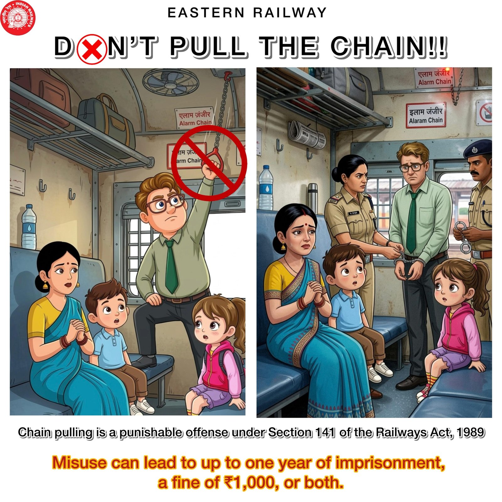 *चेन खींचना बंद करें, बहुमूल्य समय बचाएँ : दुरुपयोग के खिलाफ पूर्व रेलवे की मुहिम*