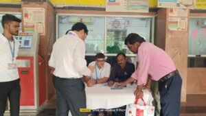 08.11.2023,आद्रा: आद्रा मंडल में यात्रियों को अनारक्षित टिकट हेतु UTS एप्प का अघिक से अधिक उपयोग करने के लिए मण्डल के विभिन्न स्टेशनो पर जागरूकता अभियान चलाया जा रहा है। भारतीय रेलवे द्वारा यात्रीयो को बेहतर सुविधा प्रदान करने की दिशा में अनारक्षित टिकट लेने के लिए UTS मोबाइल एप्प की व्यवस्था की गई है। UTS एप्प एक मोबाइल टिकटिंग एप्प है, जो यात्रियों को अपने स्मार्टफोन पर अनारक्षित टिकट बुक करने की सुविधा प्रदान करती है।