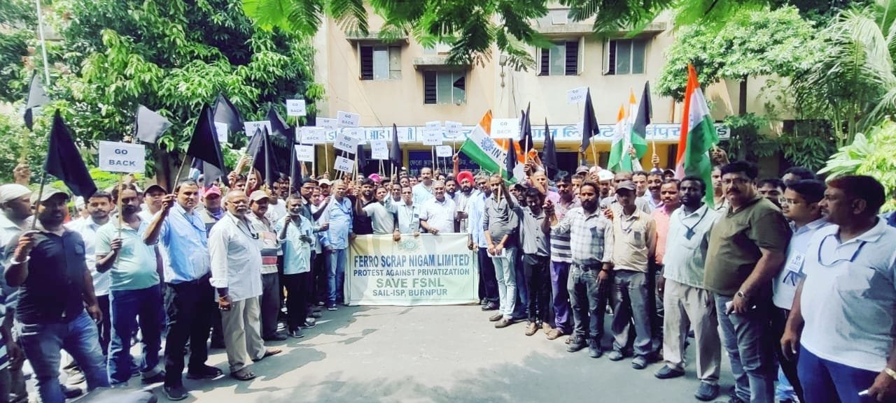 आज फेरो स्क्रैप निगम लिमिटेड(बर्नपुर सांखा) के निजीकरण के विरोध में फेरो स्क्रैप निगम परमानेंट एम्प्लॉयज यूनियन ( इंटक) और आसनसोल आयरन स्टील वर्कर्स यूनियन (इंटक बर्नपुर), ठिकेदार मजदूर कांग्रेस समेत आईएसपी में कार्यरत पांचों ट्रेड यूनियन की ओर से धरना प्रदर्शन किया गया। जहा इंटक के राष्ट्रीय नेता हरजीत सिंह के नेतृत्व में सैकड़ों की संख्या में एफएसएनएल एवम सेल आईएसपी के कर्मियों ने पूरे दिन प्लांट के भीतर और बाहर जोरदार प्रदर्शन किया। ज्ञात हो कि कर्मियों को ऐसी गुप्त सूचना मिली थी की आज एफएसएनएल बर्नपुर यूनिट के निजीकरण के लिए एक बेसरकारी संस्था के अधिकारी आने वाले थे । इस प्रदर्शन और इंटक के आंदोलन के कारण उक्त अधिकारियों को उल्टे पैर भागने पर मजबूर होना परा। हरजीत सिंह ने बताया कि मौजूदा केंद्र सरकार की निजीकरण नीतियों ने पूरे देश में एक आतंक का माहौल बना दिया है, आज पूरा देश जिस तरह से महंगाई बेरोजगारी का दंश झेल रहा इस स्थिति में fsnl जैसे लाभदायक संस्था को चंद पूंजीपतियों को बेचना चाहती है। उन्होंने चुनौती देते हुए ऐसे निर्णय का पुरजोर विरोध किया पिछले एक साल से इस निजीकरण के विरुद्ध लगातार प्रधान मंत्री, स्टील मंत्री, सांसद तक चिट्ठी के माध्यम इस मुद्दे को उठा रहे, लेकिन ये गूंगी बहरी मजदूर ,गरीब और किसान विरोधी सरकार के कान में जूं तक नहीं रेंग रहा।अगर इसके बाद भी निजीकरण के लिए कोई संस्था अति है तो उसे इस प्लांट में तो क्या बर्नपुर में घुसने नही दिया जाएगा।